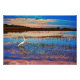 Great Egret is standing in the Florida National Everglades Park, with bands of colour from the sky reflecting in the wetlands below.