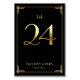 Great Gatsby Art Deco wedding table number cards with golden number 24 and customisable text, where you can add your names and wedding date, printed on black background