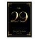 Great Gatsby Art Deco wedding table number cards with golden number 29 and changeable text, where you can add your names and wedding date, printed on black background