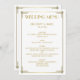 Custom Great Gatsby gold and white art deco wedding menu with customisable text