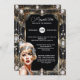 Celebrate your milestone birthday with this gorgeous "The Great Gatsby" themed 5x7 inch invitation. This vibrant, trendy and vintage design featuring a beautiful blonde flapper girl wearing a headband and deep red lipstick is framed by a roaring twenties geometric art deco border adorned with gems. The black inlay has white templates on it for your custom wording and the back has an additional template for further details, if required. If not, simply delete the wording on the back. This elegant, luxurious and old fashioned era design is ideal for any special 1920's celebration.