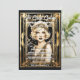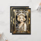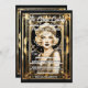An ornate faux gold vintage art deco style frame has a beautiful comic style illustration of the face of a blonde Flapper girl from the 1920's that has beautiful sultry eyes. She is wearing a sleeveless top and a golden headband and is framed by a shimmering faux gold art deco detail frame. The design is suited to 1920's theme parties; art deco themed celebrations or Great Gatsby bridal party and corporate events. They are perfect for both business and personal use. The back has the same ornate frame with a template for your heading or additional information.