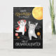 Cute lollipops and a big yellow moon create a fun background on this Halloween card for your young great granddaughter and for these happy costumed kitties.
