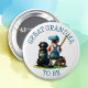 Great Grandma to be baseball and puppy dog themed boy's baby shower button! Cute baseball baby shower button for the grandma to be. A little baby boy with a baseball cap and bat sitting on a bench next to a Black Lab Puppy Dog. Adorable baseball themed boy's baby shower button in a watercolor style.