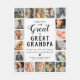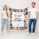 Personalised great grandfather picture blanket featuring the cute saying "you put the great in great grandpa", 18 photos of the grandkids, their names, and the sweet caption "Grandpas bring a little wisdom, happiness, warmth, and love to every life they touch.".
