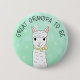 Great Grandpa to be baby shower button llama with yellow bow and light green background for boy or gender neutral baby shower.