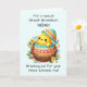 Celebrate your great-grandson’s very first Easter with this sweet and playful card featuring a baby chick hatching from an egg, surrounded by colourful spring flowers. The soft pastel teal background adds a gentle, festive touch, and the front can be personalised with his name for an extra special keepsake. The cheerful message on the front captures the excitement of this milestone, while the inside wishes him a day filled with love, fun surprises, and endless happiness. This card is the perfect way to make his first Easter unforgettable and full of joy.