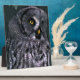 Cute Great Grey Owl or Lapland Owl (Strix nebulosa), very large owl, distributed across the Northern Hemispher. Painting effect.