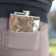The flask itself is fine. It’s a cheap flask, obviously bought in bulk, however am prepared to overlook that. Given that it is a personalized item, I would have liked to have seen gift boxing instead of the generic packaging. Terrible printing, and/or quality. It’s a cheap, tacky vinyl. It is not cut straight and is also applied in a way that it is overhanging the bottom, causing the glue to catch on items and it will eventually roll and tear, damaging the wrap.