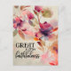 Postcard depicts a beautiful floral watercolor including elegant pink and lavender flowers and greenery on a light gold background. It features the beloved Christian Hymn, "Great is Thy Faithfulness." The back features the greeting along with the the chorus of the Hymn, "Great is Thy faithfulness! Morning by morning new mercies I see. All I have needed thy hand hath provided; Great is Thy faithfulness, Lord, unto me!" They both can be customised to the details of your choice.
