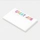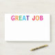 This 10 x 6 pad of post-its notes is perfect for anyone! With it's bright, happy colours and classic block print saying "Great Job" it would be great to give anyone who has done a great job lately or it would be a wonderful note to put on someone's lunch, desk, school work, computer, etc.