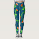 Modern leggings in ocean blue with colourful orange floral print. Personalise the background colour, or flowers are also removable.