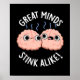 Great Minds Stink Alike Funny Brain Pun features a cute duo of stinky brains who think alike . Perfect pun gift for family and friends who love cute brain puns.