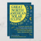 On April 8th 2024, a total solar eclipse will be visible across much of the United States, Mexico, and Canada. If you're planning on celebrating this exciting event with a fun viewing party, these invitations are perfect for you. The text says "Great North American Solar Eclipse" with a sun, moons, stars, and viewing glasses - plus room for all your party details. Just use the easy template fields to personalise. Celebrate this rare occasion in style with these fun solar eclipse party invites!