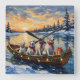 Great Pyrenees Christmas Boat Holiday Square Wall Clock