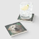 The coasters are gorgeous, a quality feel and heavy weight. They look like a precious archeological find. A rustic stone juxtaposed with a modern floral black and white print. I like the way the print goes slightly imperfect on the cut stone edges giving them a kind-of natural beauty.