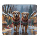 This festive design captures the joyful spirit of the holiday season, featuring an adorable dogs.Nestled in a winter wonderland, complete with a decorated Christmas tree, and beautifully wrapped presents. Snowflakes gently fall, adding a magical touch to the scene, while the vibrant colours of the holiday decorations create a warm and cheerful atmosphere.