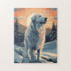 Great pyrenees in the snowy forest during sunset jigsaw puzzle