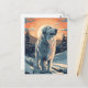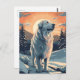Colourful Art with a Great pyrenees in the snowy mountain forest during sunset.