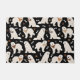 Cute Great Pyrenees dogs sit and stand with paw prints and dog bones pattern.