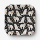 Cute Great Pyrenees dogs sit and stand with paw prints and dog bones pattern.
