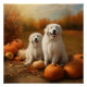 Great Pyrenees Puppy Autumn Delight Pumpkin Poster