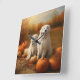 Great Pyrenees Puppy Autumn Delight Pumpkin Square Wall Clock