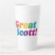 This t-shirt design features the iconic phrase "Great Scott!" in a fun, multi-colour, and slightly retro font. The letters are bold and pop with a vibrant rainbow of colours, giving the design a playful and eye-catching feel. The text is the central focus of the design, celebrating the famous movie quote with a simple yet dynamic style