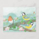 Great Tit Birds Singing on a Blossoming Tree Postcard