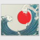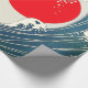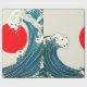 GREAT WAVE AND RED SUN Blue White Nautical Wrapping Paper