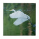 A beautiful Great White Egret in flight with it's wings in the down position over a river.