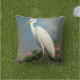 This beautiful Great White Egret throw pillow features nature as its best, he is perched on a bed of a pink hibiscus bush with a background of grey. This one of a kind original was created by Jacqueline Sleter of Bradenton, Florida.