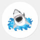 Funny drawing of a great white shark surging from the waves with its rows of teeth showing.