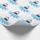 Cute cartoon of a great white shark leaping from the waves with its toothy jaws wide open.