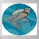 A great white shark in the water showing it’s teeth. This design looks really effective on these Poster