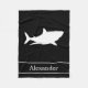 Great White Shark Silhouette with Name on Black Fleece Blanket
