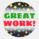 "GREAT WORK!" + Fun, Colourful Stars Pattern Classic Round Sticker