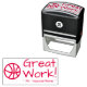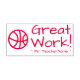 This inspiring rubber stamp design features the praising message "Great Work!" and a customised educator name. It also features a decorative basketball icon. It could be used by a school teacher or educator when marking assignments, to acknowledge that a student has done well.
