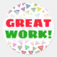 "GREAT WORK!" + Multicolored Triangles Pattern Classic Round Sticker