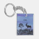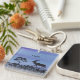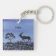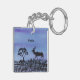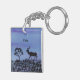 A watercolor painting of a Greater Kudu silhouetted in the evening sky adorns this customisable keychain!