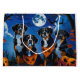 Unleash the spooky spirit with this eerie Halloween design featuring a pack of dogs under a dark, moonlit sky, surrounded by flying bats and glowing pumpkins. Perfect for those who love a touch of frightful fun with their furry friends!