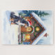 Greater Swiss Mountain Dog Snowy Cabin Santa Hat Jigsaw Puzzle