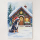 Send joyful holiday greetings with this festive Christmas card featuring a Greater Swiss Mountain Dog wearing a Santa hat near a cozy snow-covered cabin. Evergreen garlands, glowing lanterns, and gentle snowfall create a peaceful watercolor winter scene perfect for dog lovers. The blank interior provides plenty of space for personalized messages, making it ideal for gifting, seasonal correspondence, and breed-themed collections.