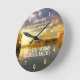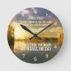 Beautiful inspirational quote wall clock depicts an autumn sunset over the water and features Bible Verse John 14:12, He who believes in Me, the works that I do he will do also; and greater works than these shall he do.*