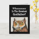 Give an original watercolor painting card of a majestic owl to the greatest godfather for a birthday celebration. "Whoooo is the greatest godfather?" He will smile at the funny verse on the inside. Birdwatchers will be delighted at the design showing realistic details painted in rustic colours of brown and black. Fans of nature art will love this card with a closeup view of a handsome owl.