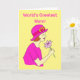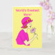 Illustration of a woman wearing a pink hat and dress and holding a pink flower. Messsage reads 'World's Greatest Mum' and inside 'Happy Mother's Day'. Easily edit the template text to personalise this card. Thanks for viewing my designs.