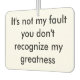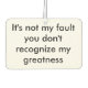 You know your awesome, so why doesn't everybody else? Let the world know its their fault. This funny air freshener says, "It's not my fault you don't recognise my greatness".