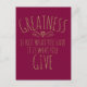 Greatness in giving slogan postcard