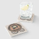 The coasters are gorgeous, a quality feel and heavy weight. They look like a precious archeological find. A rustic stone juxtaposed with a modern floral black and white print. I like the way the print goes slightly imperfect on the cut stone edges giving them a kind-of natural beauty.