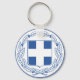 The coat of arms of Greece displays a white cross on a blue escutcheon, which is surrounded by two laurel branches.